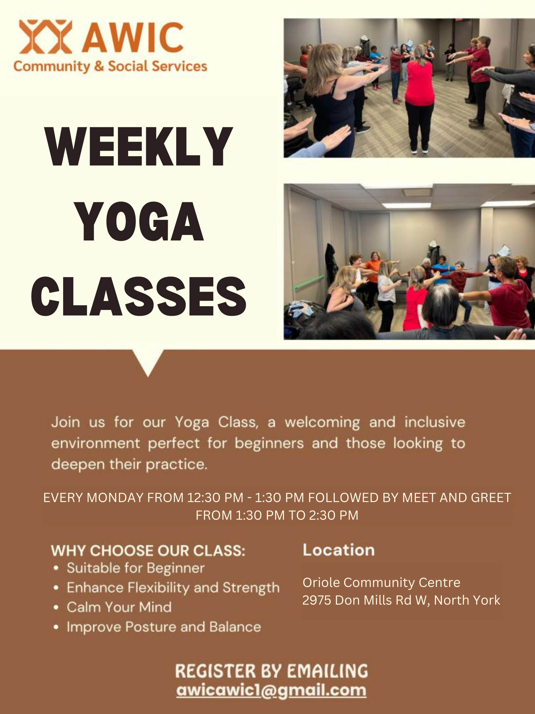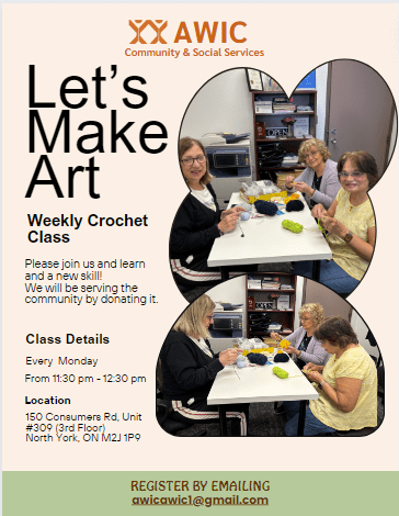 Due to the current unavailability of space and resources, our weekly yoga and crochet classes are temporarily paused. We are looking forward to resuming these sessions soon.
